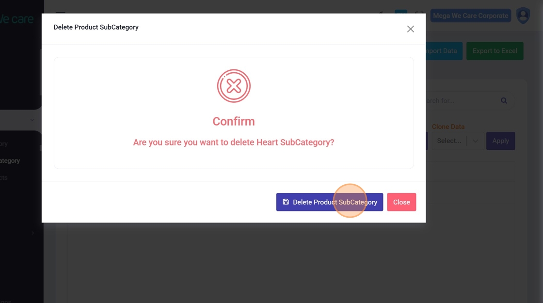 Click Delete Product Sub Category to permanently remove the subcategory. This action cannot be undone.