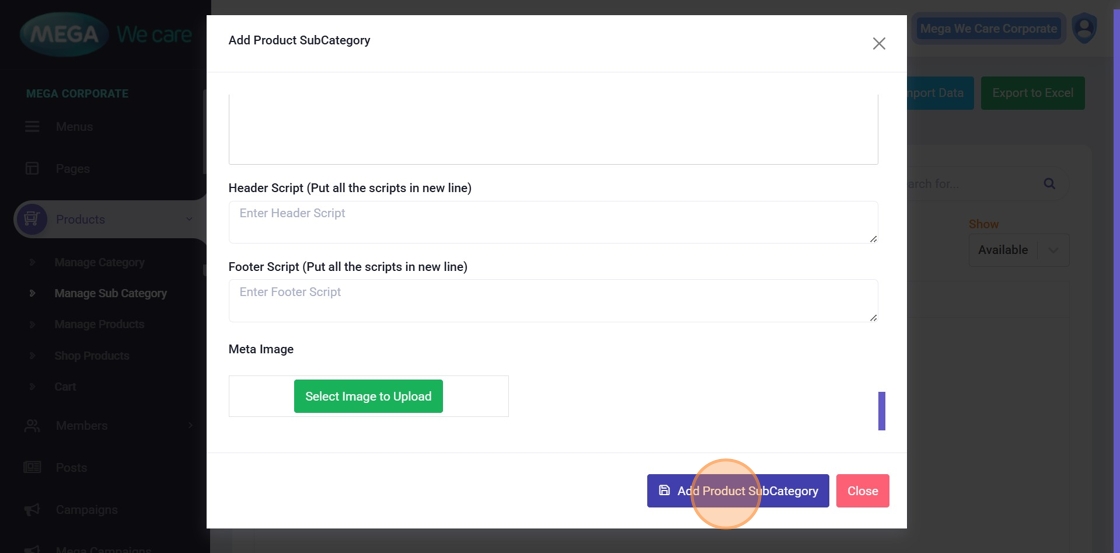 💾 After completing all required details, click Add Product Sub Category to create the subcategory.