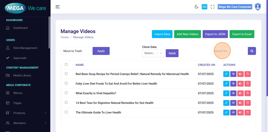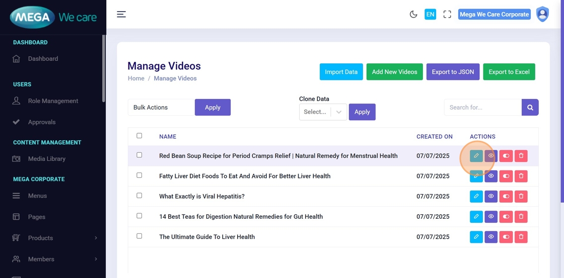 โ Confirm that the newly added video appears in the Manage Videos list.