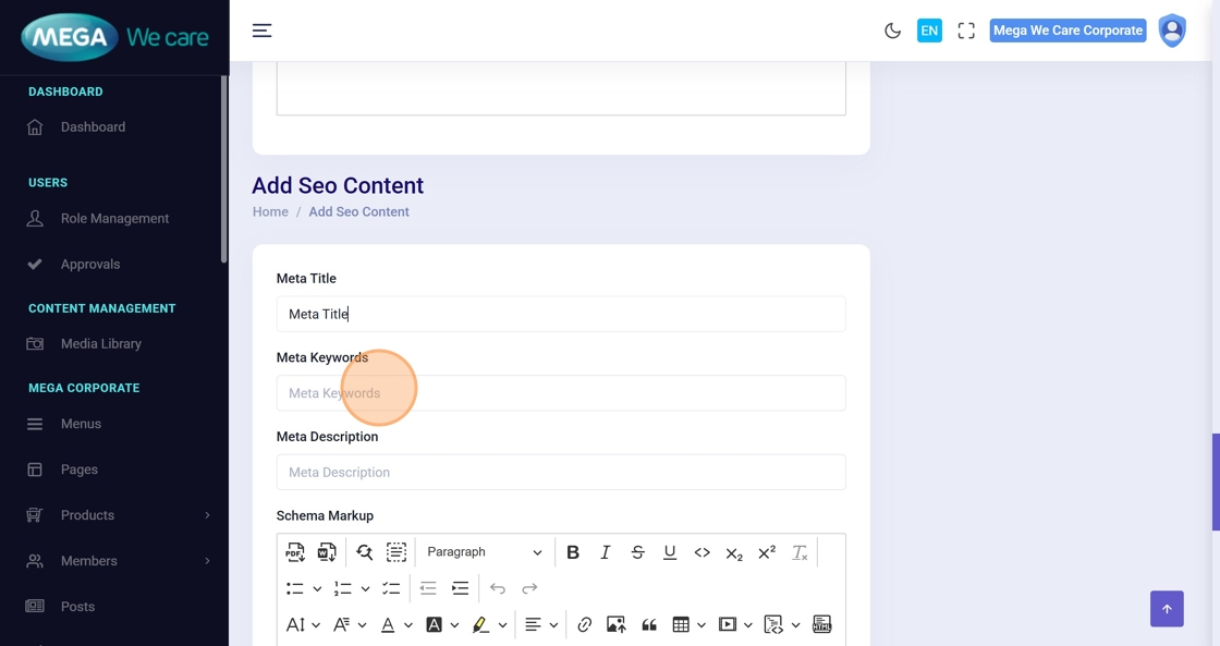 Fill out the SEO fields: