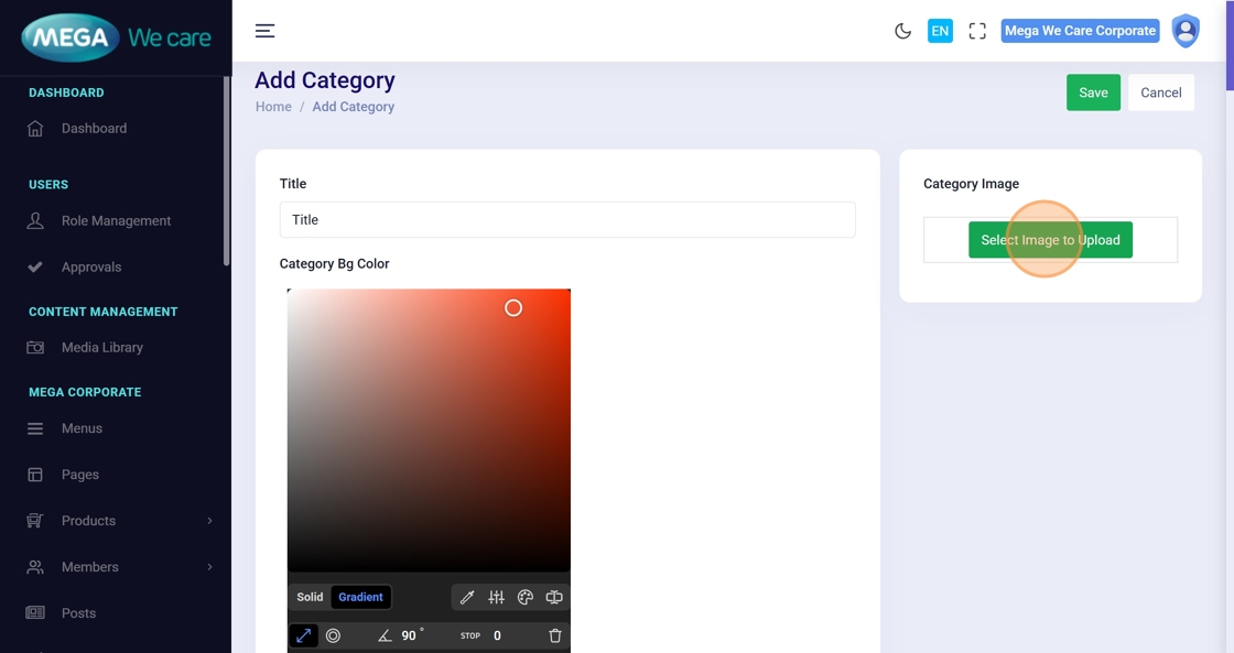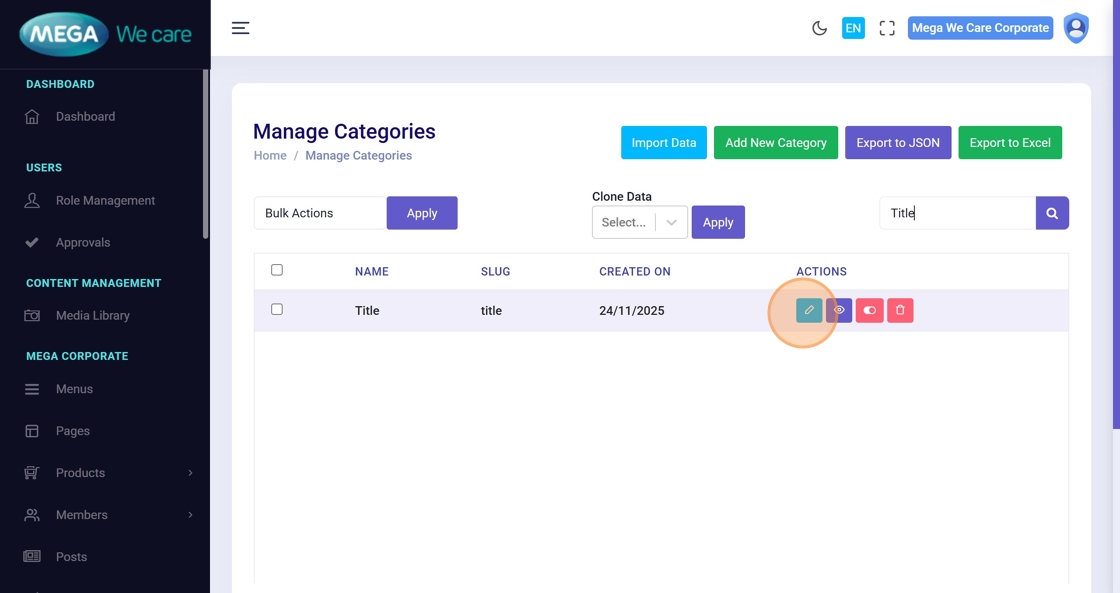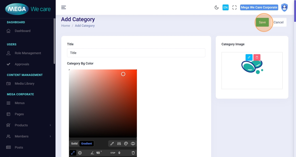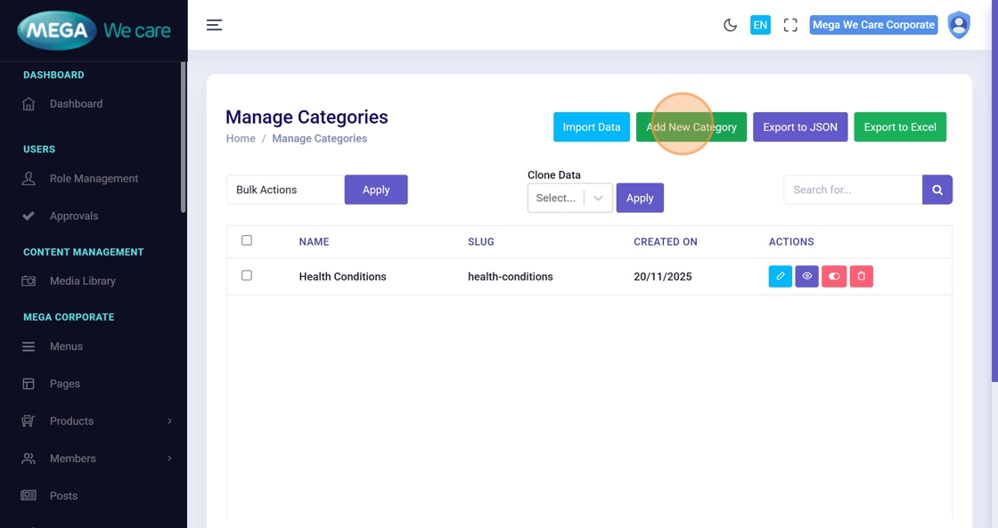 Navigate to Category from the dashboard.