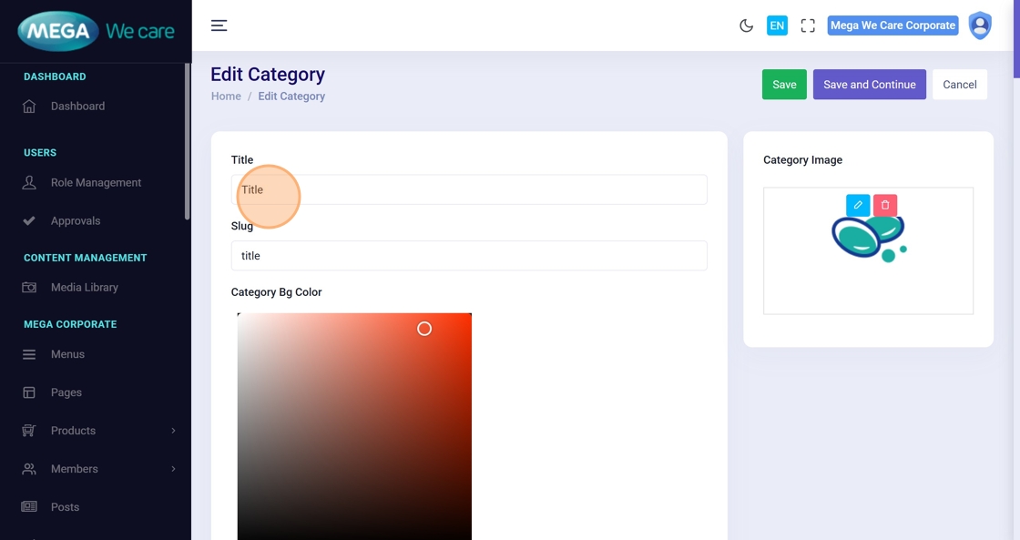 Type the category name in the Title field.