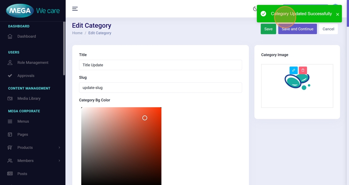 Look for “Category Updated Successfully”.