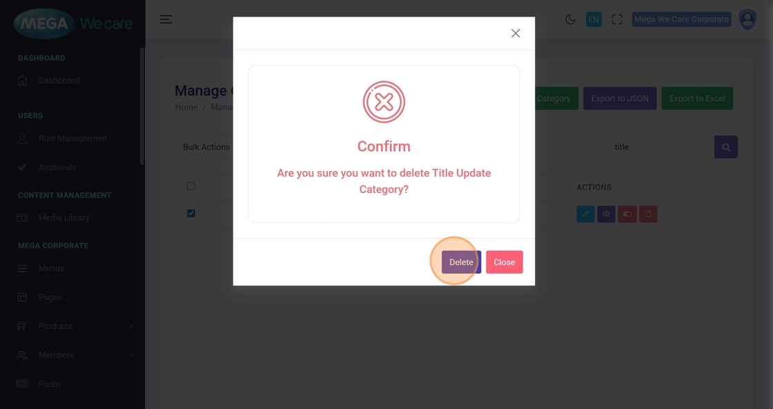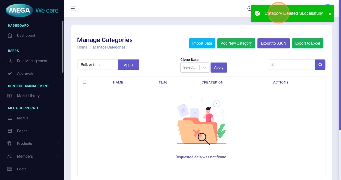 A message “Category Deleted Successfully” will appear.