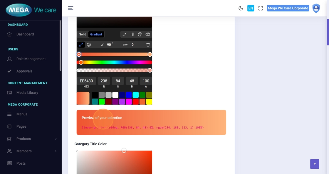Use the color picker to choose the background color and title color.