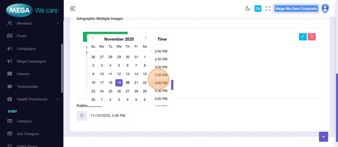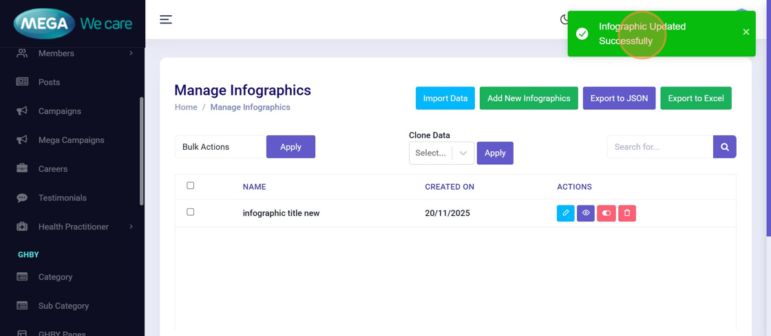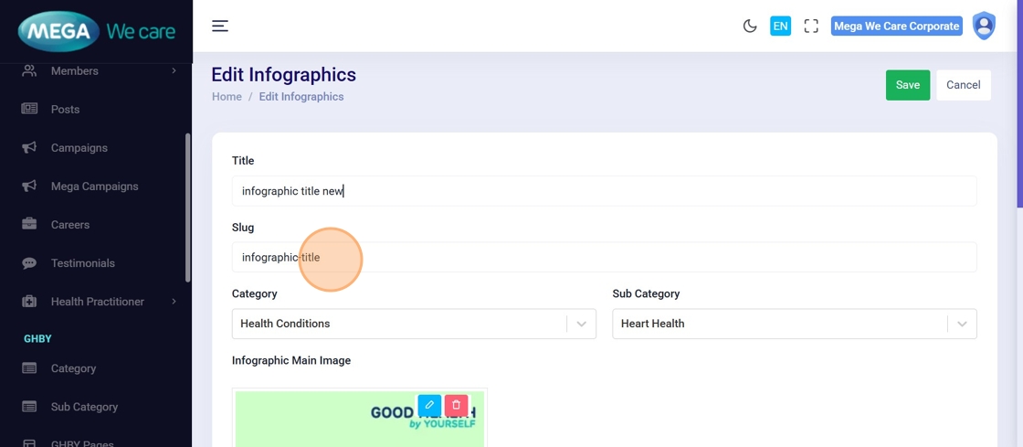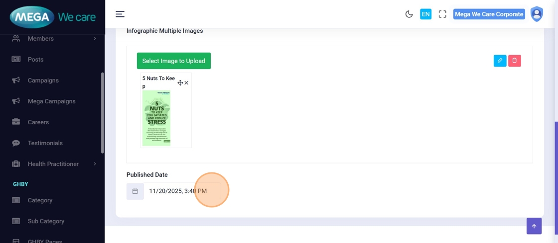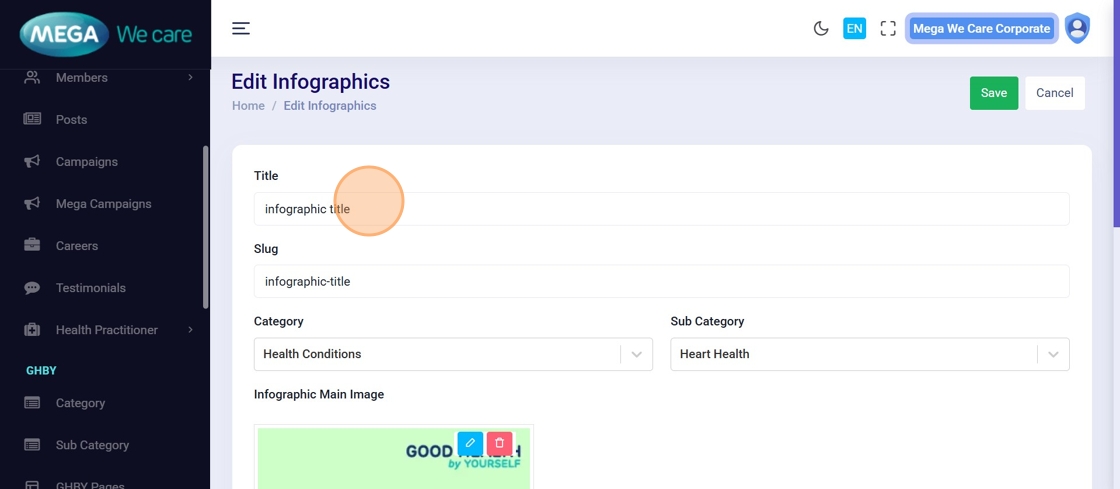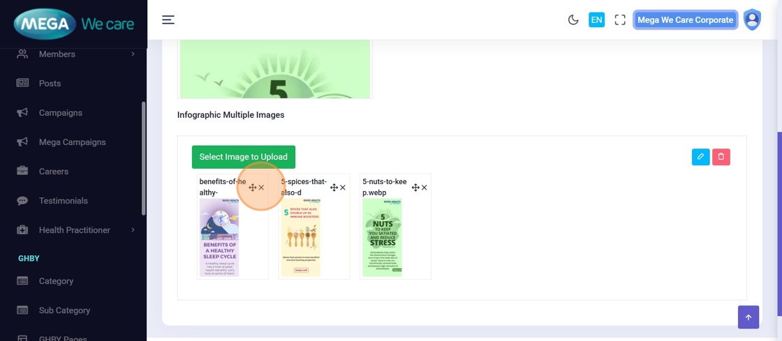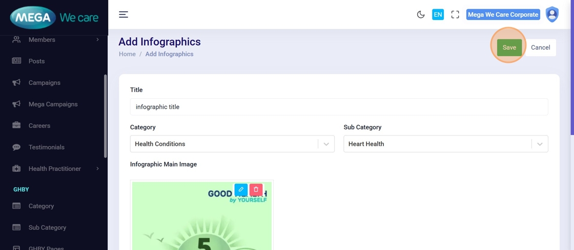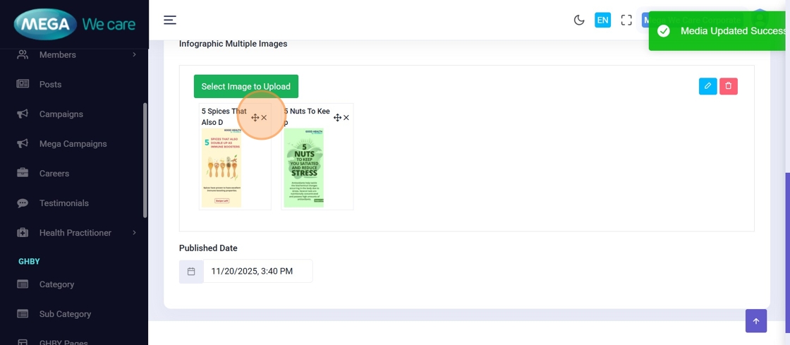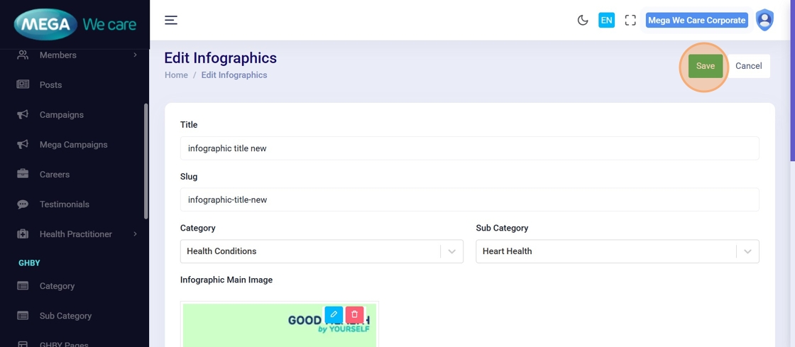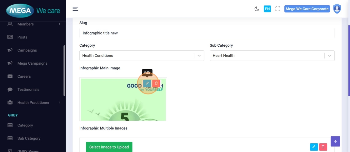By following this document, users can create infographics using single or multiple images, organize content with categories and subcategories, reorder, edit, or remove infographic images, update titles, slugs, and publish dates, and safely delete or permanently remove infographics. This process helps keep infographic content clean, professional, and visually consistent across the GHBY platform.