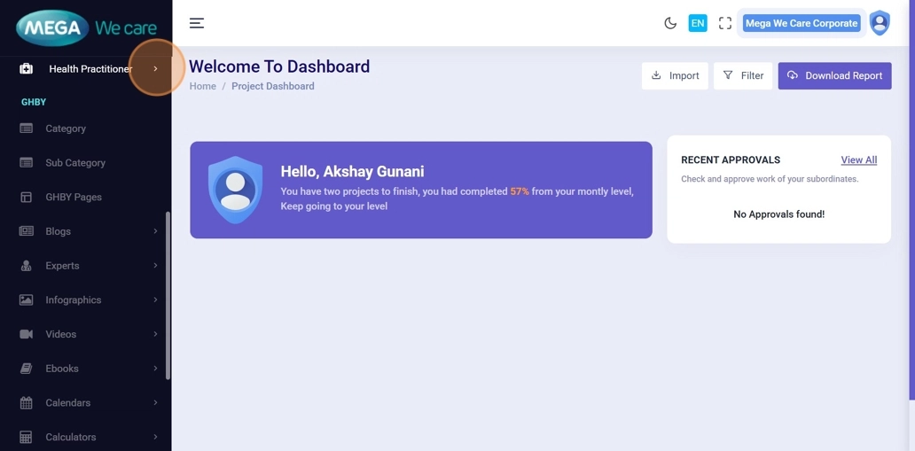 To begin managing HCP speakers, click Health Practitioner, then select Manage Speakers.