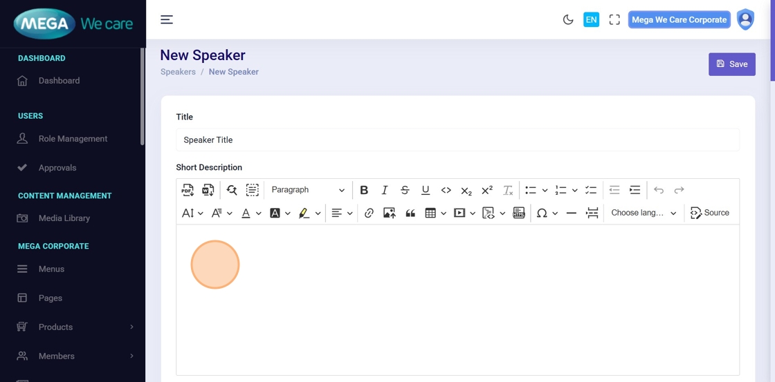 In the Short Description field, enter a brief introduction summarizing the speaker’s role or expertise.
