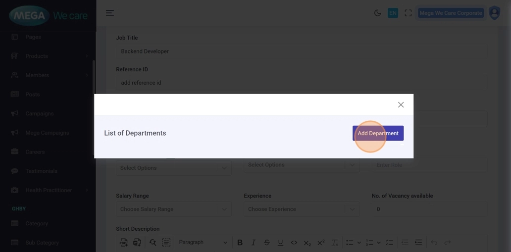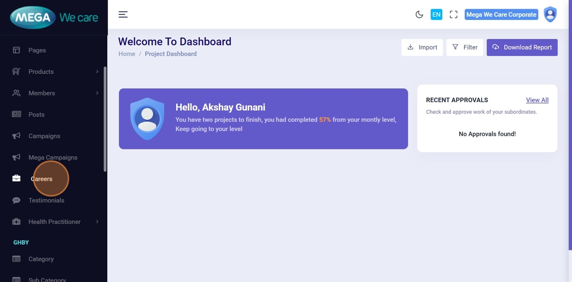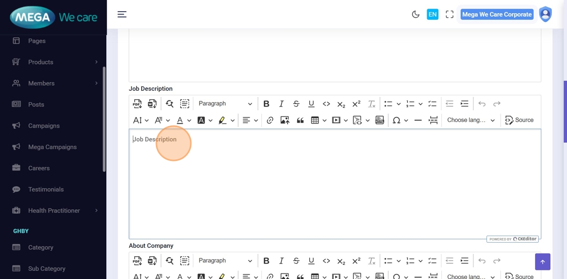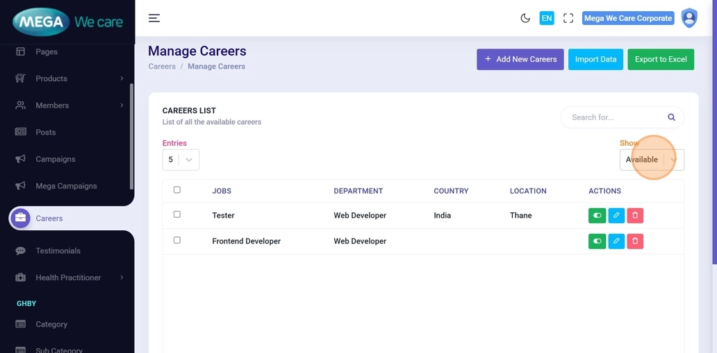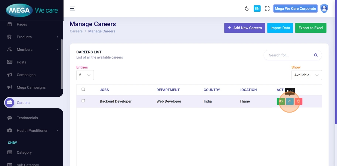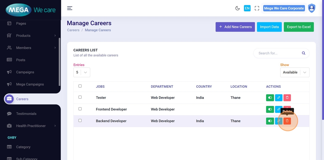 From the Admin Dashboard, click Careers to manage job postings.