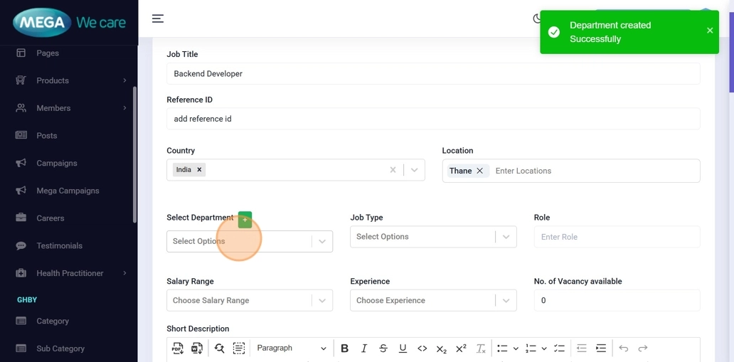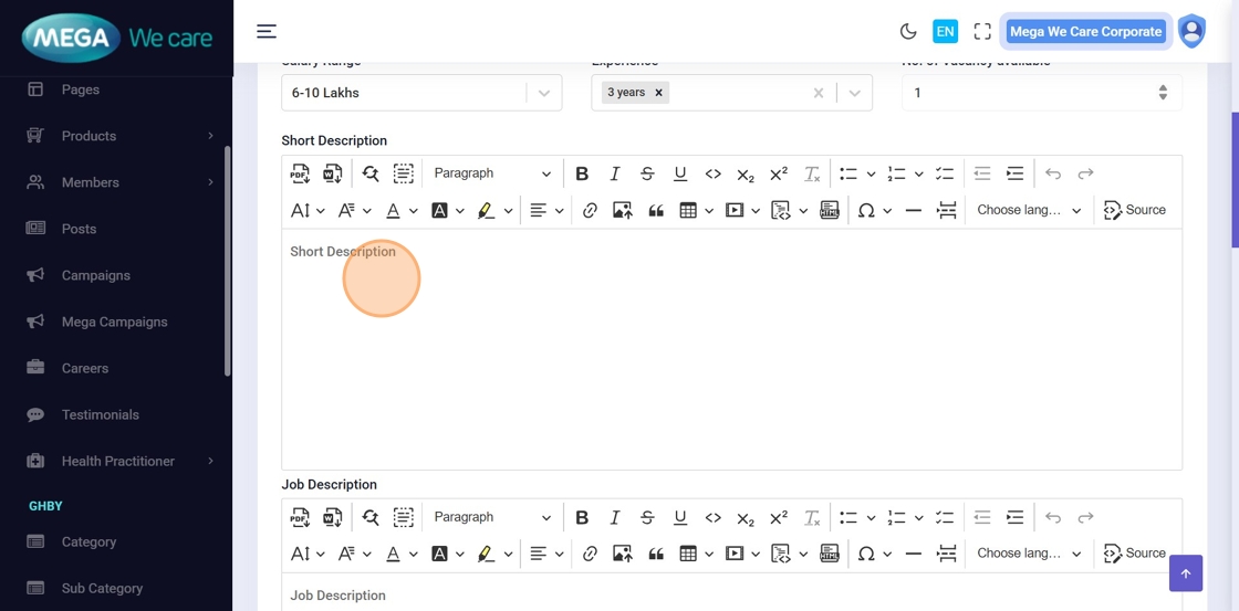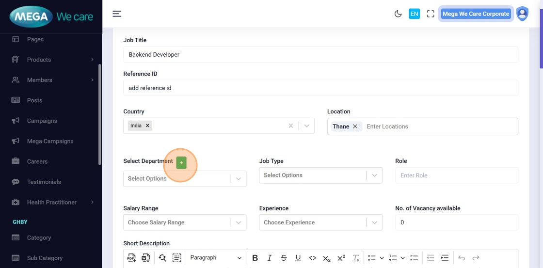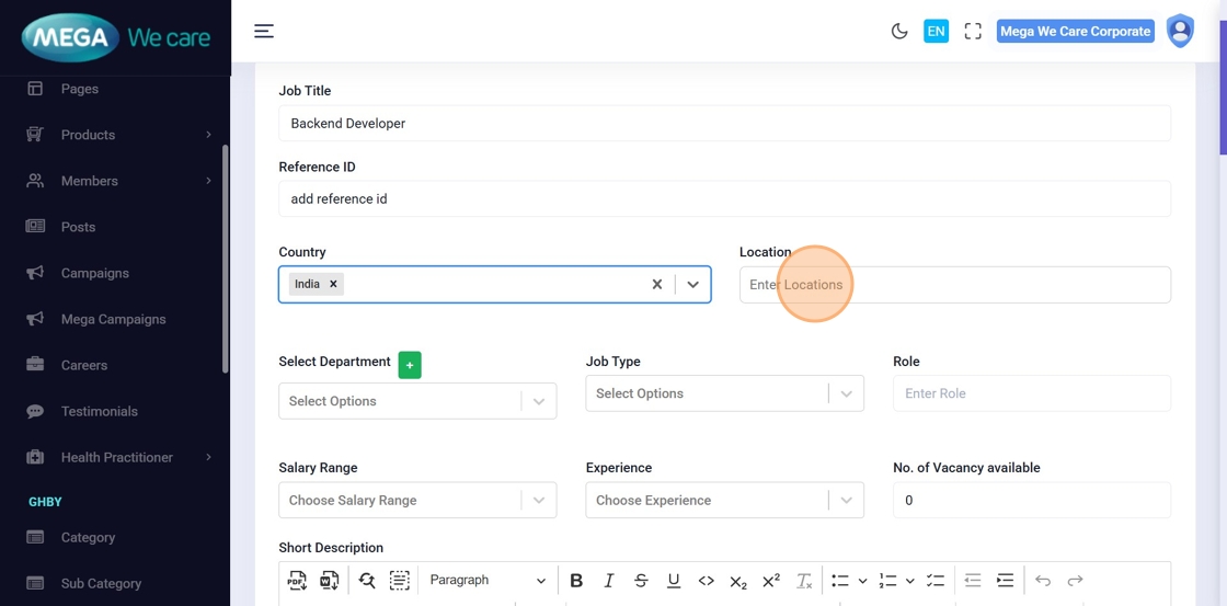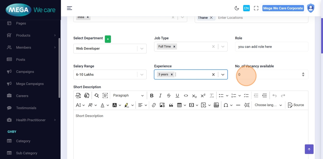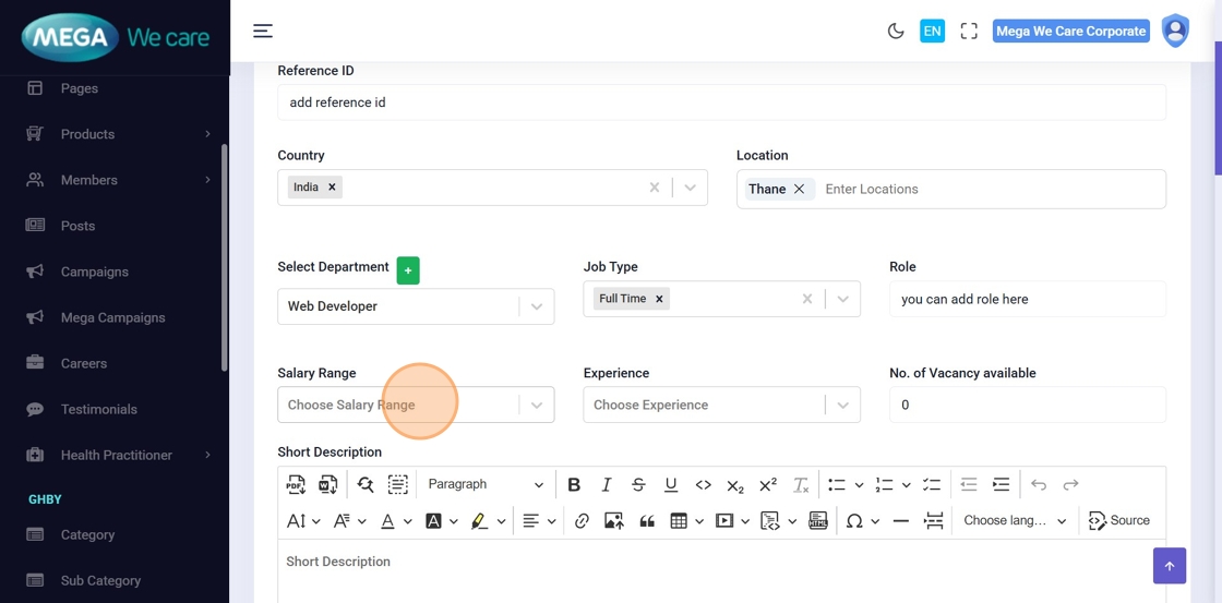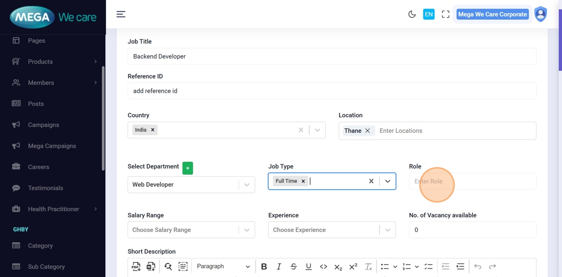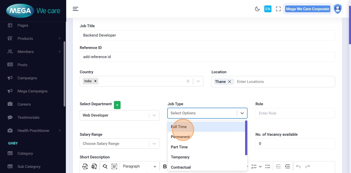 Choose the job type (Full Time, Part Time, Permanent, Contractual, Remote, etc.).