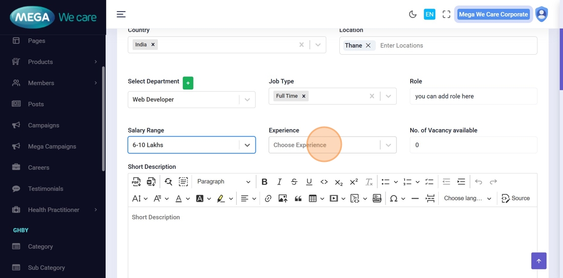Choose the required experience for the role.