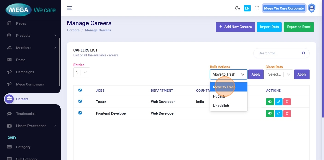 By following this document, users can add and update job postings with complete details, move jobs to Trash and restore them when needed, permanently delete outdated postings, and efficiently manage recruitment content. This helps keep the careers section up to date, organized, and easy to manage.