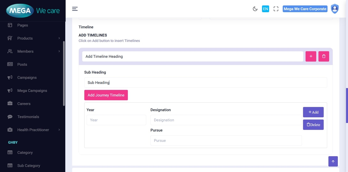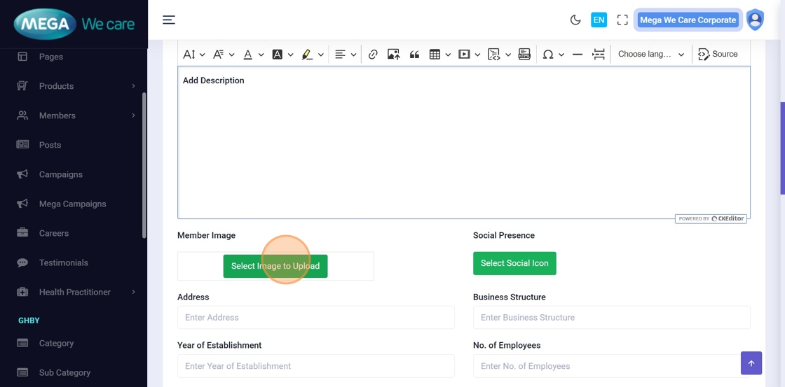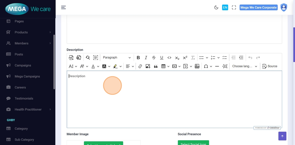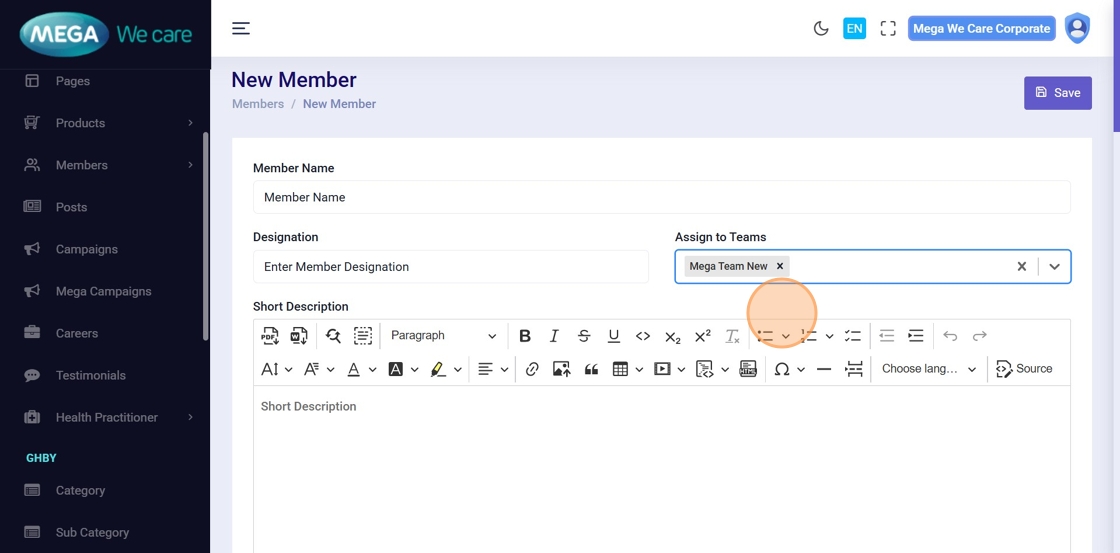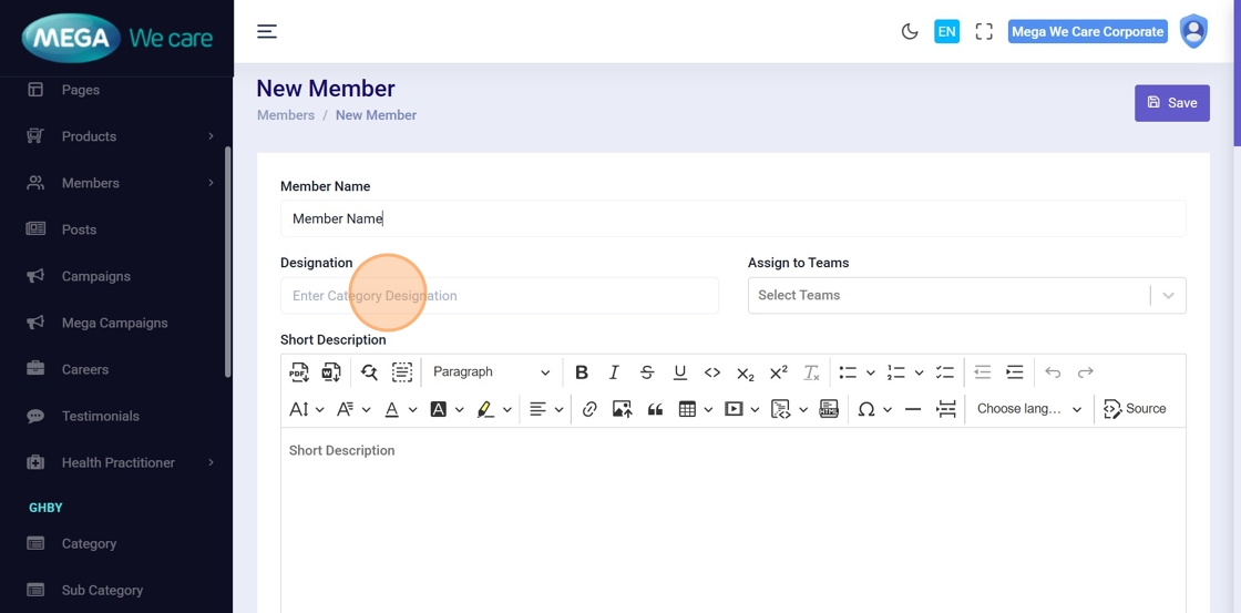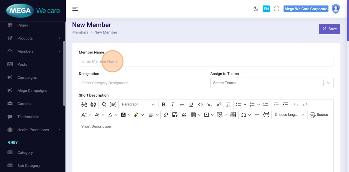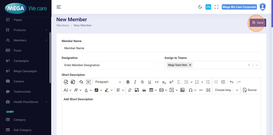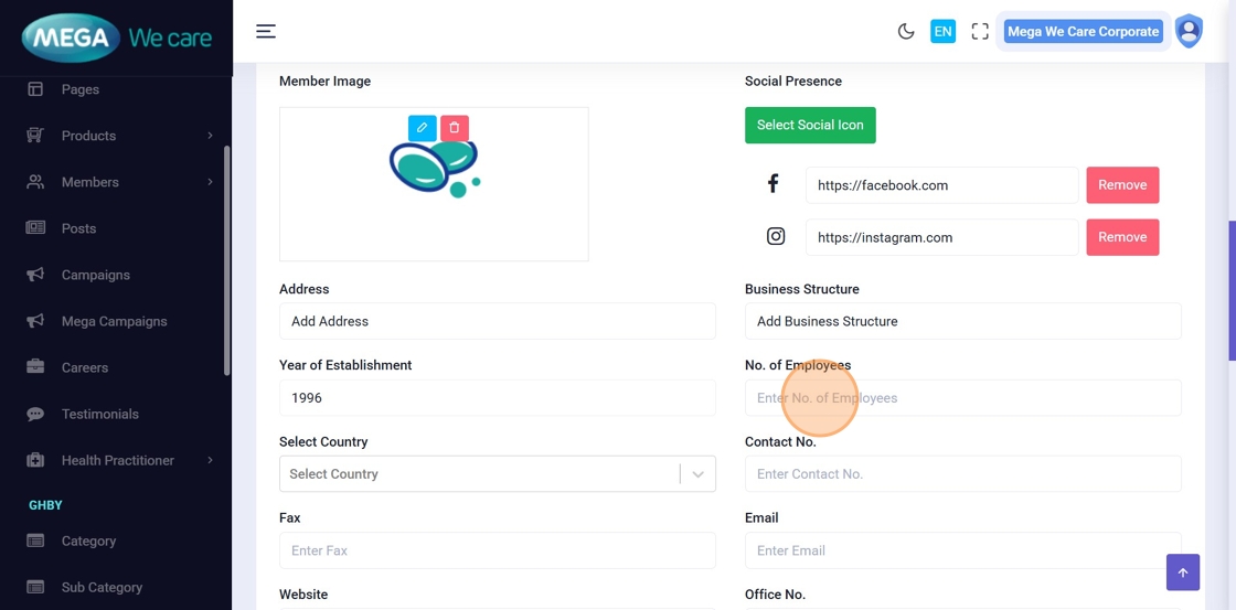 This document explains how users can manage Mega Directors and Country Manager profiles using the Members module. It covers adding and updating profiles, assigning teams, uploading images, managing social links and career details, handling SEO information, and safely deleting profiles when needed.