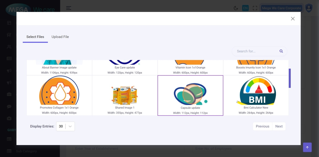 Choose an image from the media library or upload a new one.