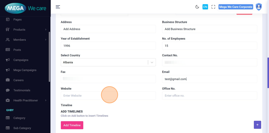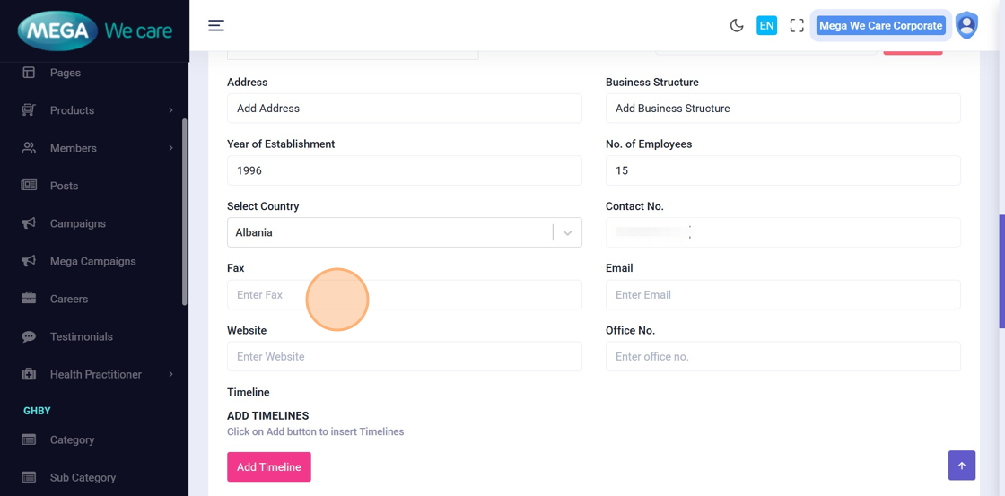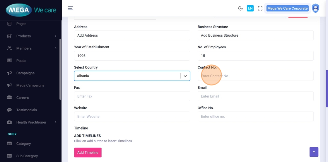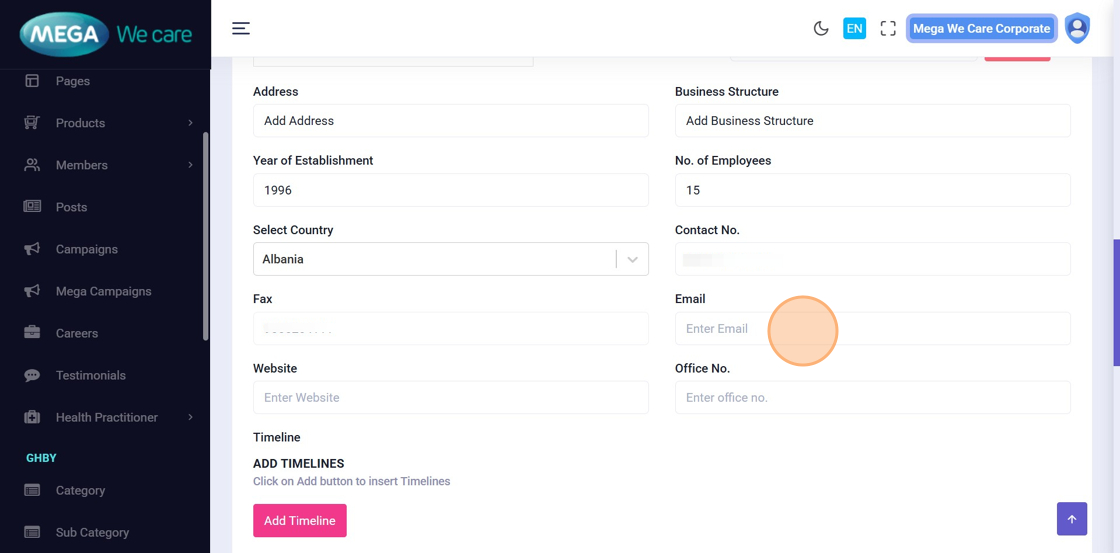 Fill in relevant business and contact details, including: