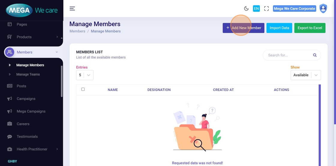From the left sidebar, click Members to access the module.