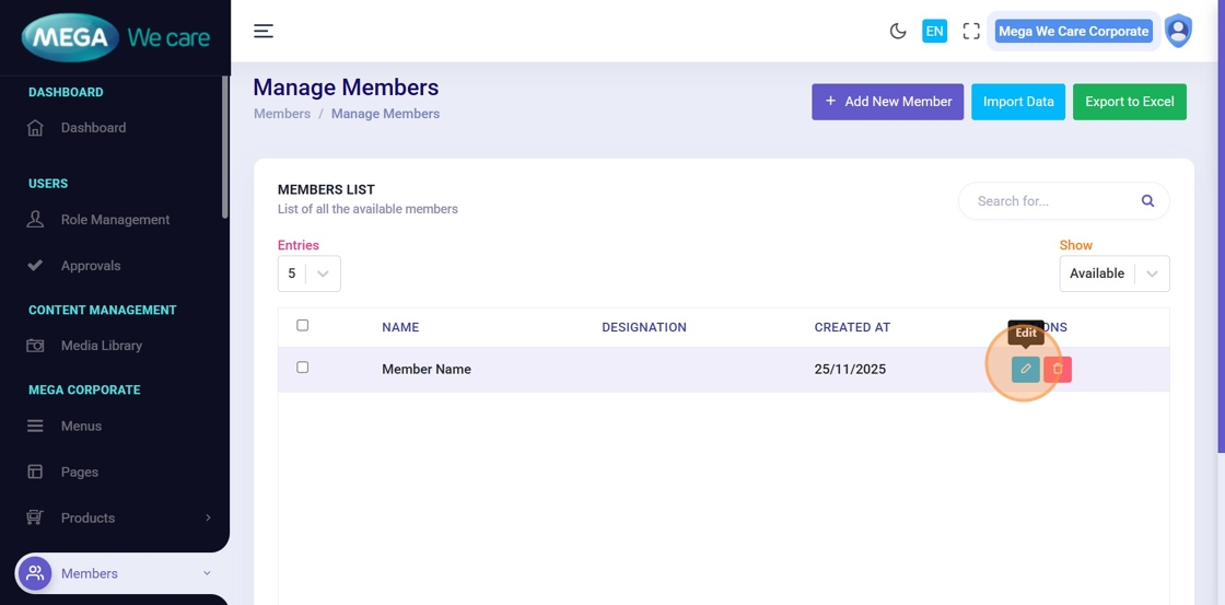 Locate the member in the list and click Edit.