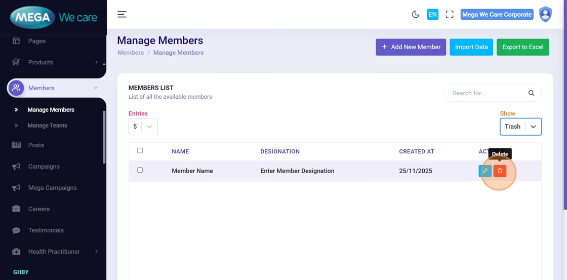 By following this document, users can add detailed member profiles with images, teams, and timelines, manage social links and business information, easily edit and update member details, permanently delete outdated records, and maintain a clean and professional Members data.