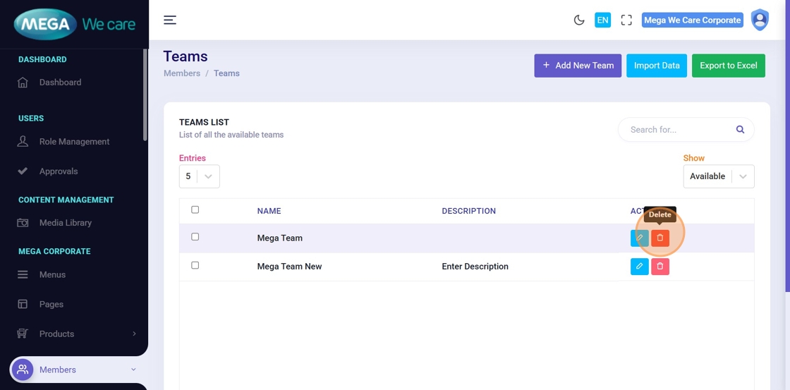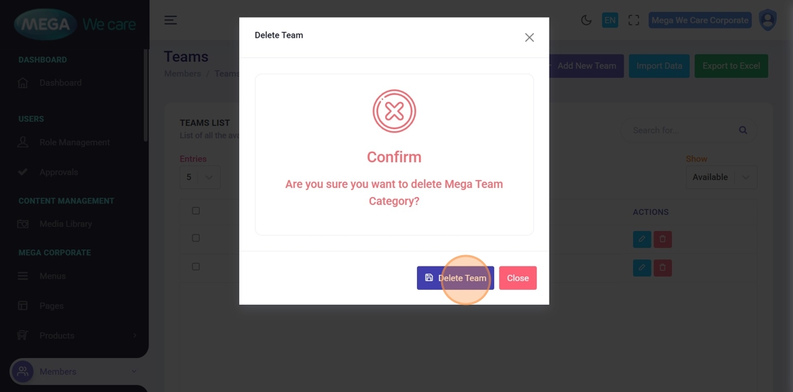 🗑️ Locate the team you want to remove and click the Delete icon.
