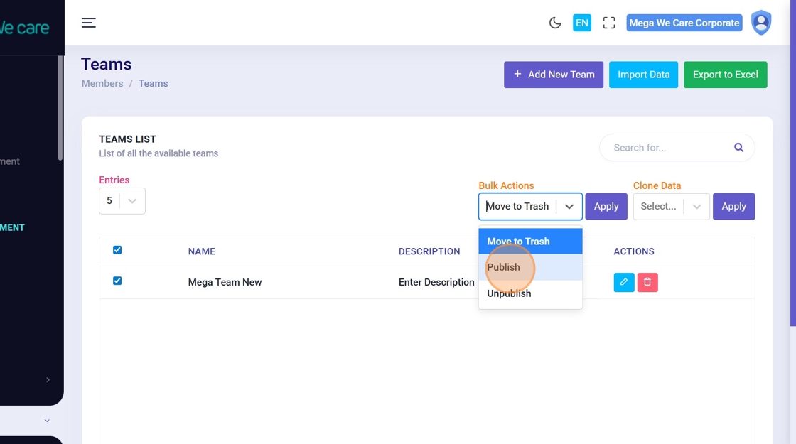 By following this document, users can create teams with names, descriptions, and images, easily edit and update team details, permanently delete teams when no longer needed, use bulk actions to manage multiple teams efficiently, and maintain a clean, organized, and professional team directory.