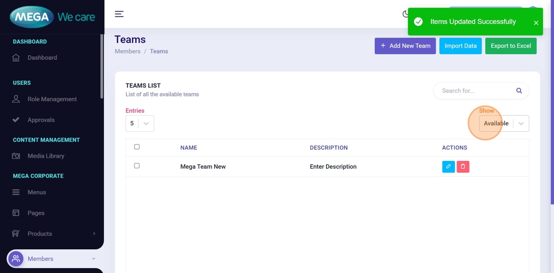 ✅ A confirmation message (e.g., “Items Updated Successfully”) will appear once the action is completed.