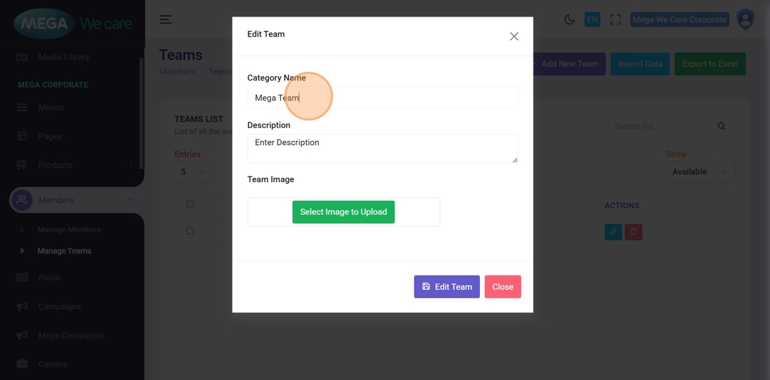This document explains how the Teams module enables users to create, manage, and maintain teams within the backend dashboard. Using this module, users can add new teams, upload team images, update team details, delete teams when required, and perform bulk actions to manage multiple teams efficiently.