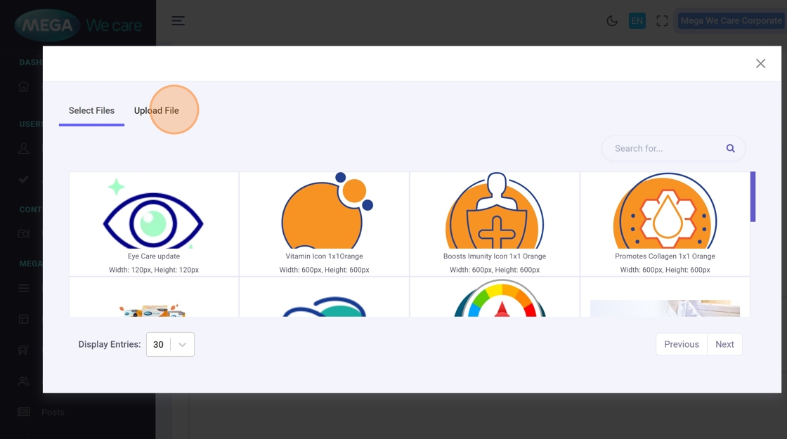 Click Select Image to Upload, upload or select from the media library.