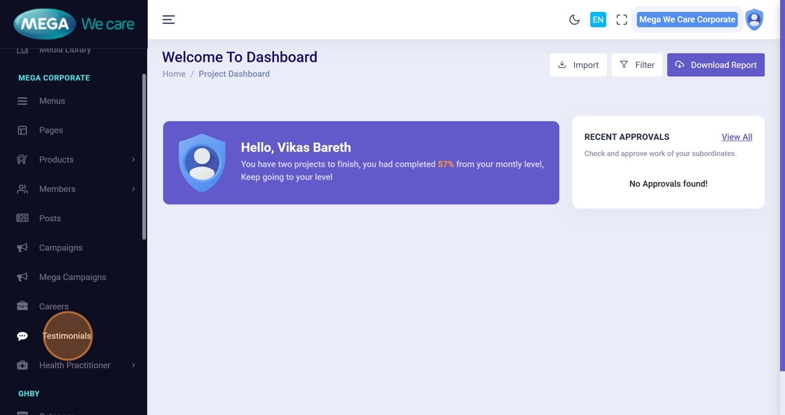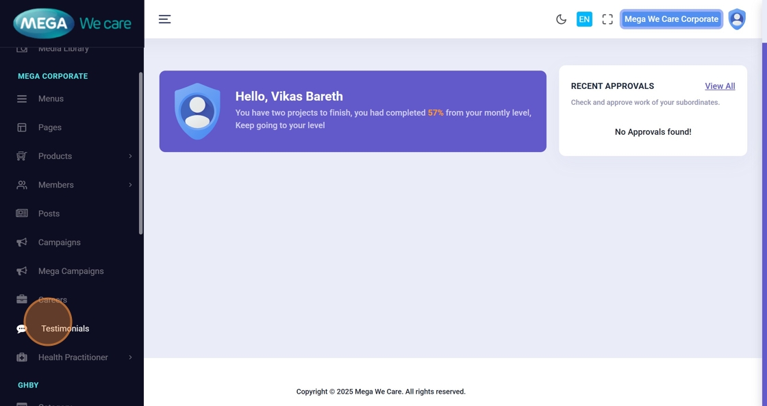 Go to the Admin Dashboard to start managing testimonials.