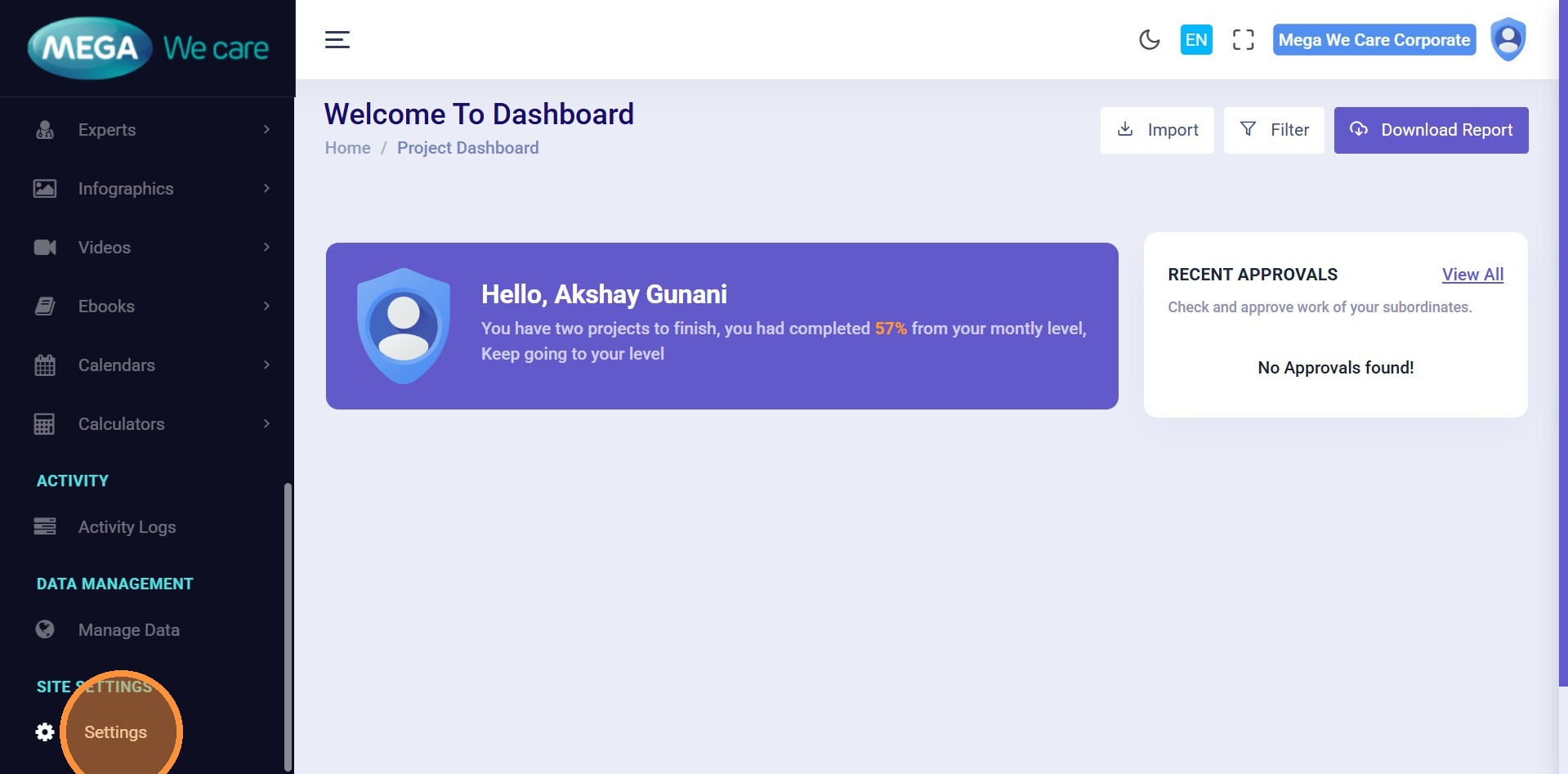 From the Admin Dashboard sidebar, click Settings.