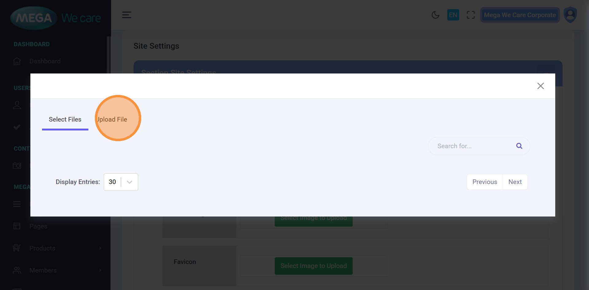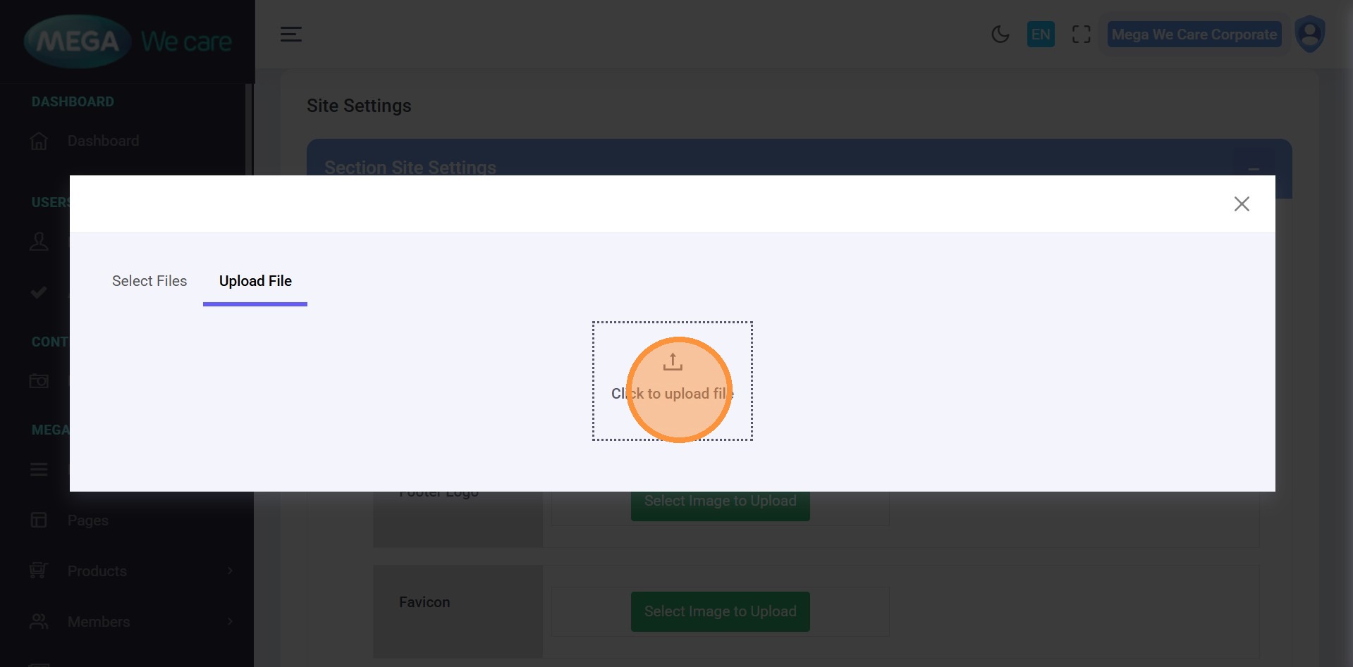 Click Select Files to choose an image or click Upload File to add a new one from your device. After uploading, the logo will be updated automatically.
