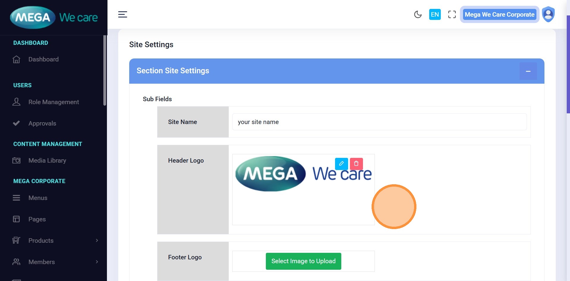 This document explains how to manage your website settings from the backend dashboard. Using the Site Settings section, you can change the website name, upload header and footer logos, set the favicon, and apply the changes across the entire website instantly.