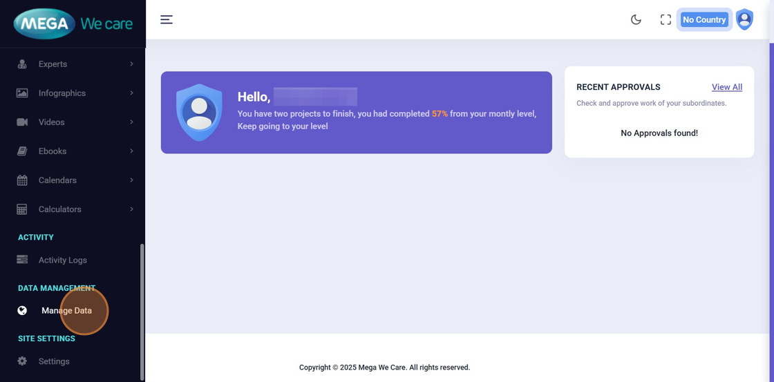 From the Admin Dashboard, click Manage Data.