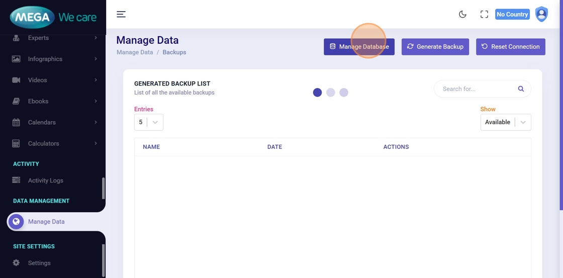 Click Manage Database from the dashboard.