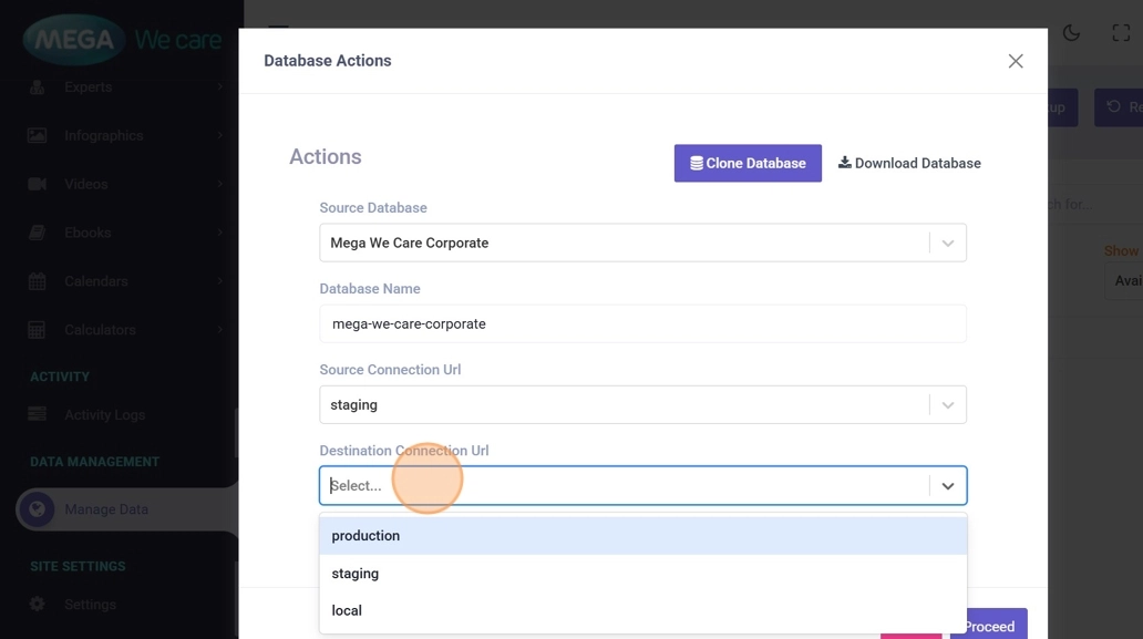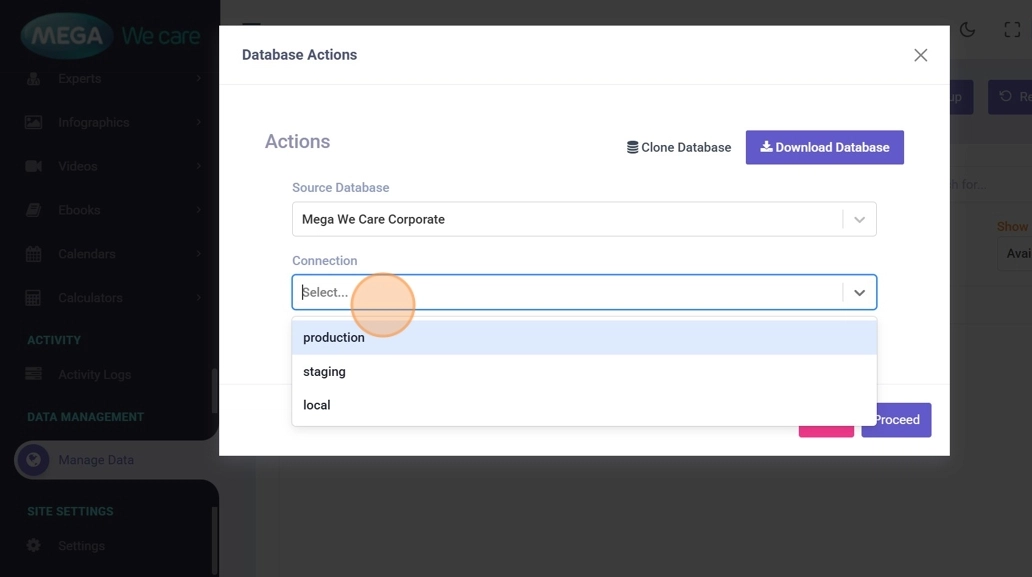 This document explains how the Database Management module allows users to safely manage databases across different environments. Using this module, users can clone databases between environments (Local, Staging, and Production), download database copies, and generate secure backups for recovery or migration purposes.