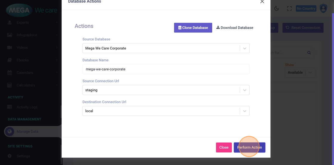 Click Perform Action to start cloning.