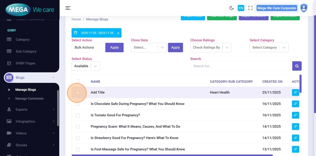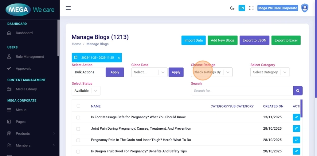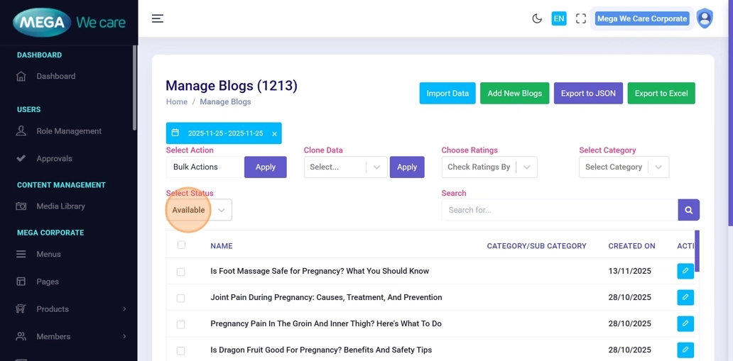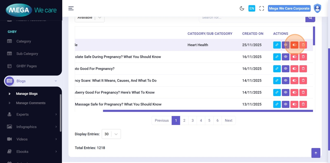 By using this unified management workflow, users can control publish and unpublish status, apply bulk actions, filter and search content easily, analyze engagement where available, and keep all sections clean, organized, and well-managed. This ensures consistency, efficiency, and better control across the entire backend dashboard.