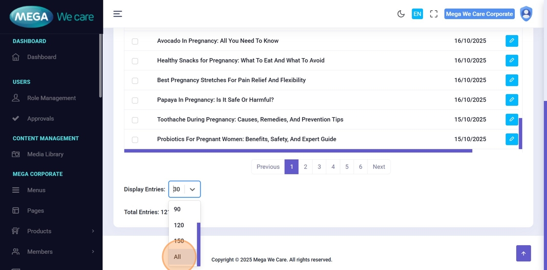 - Change pagination (e.g., 30 β All)