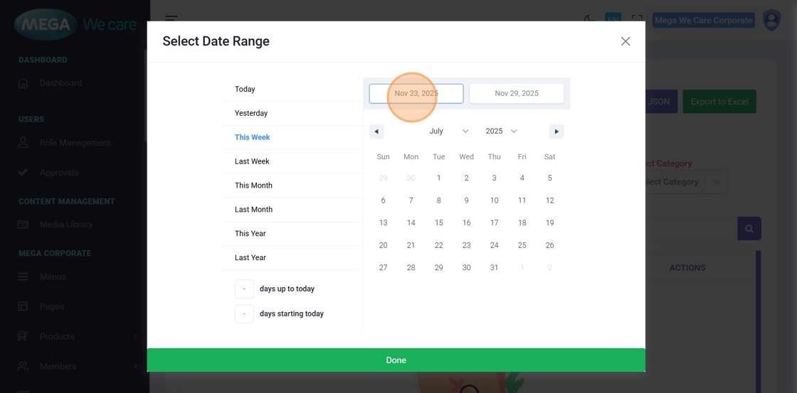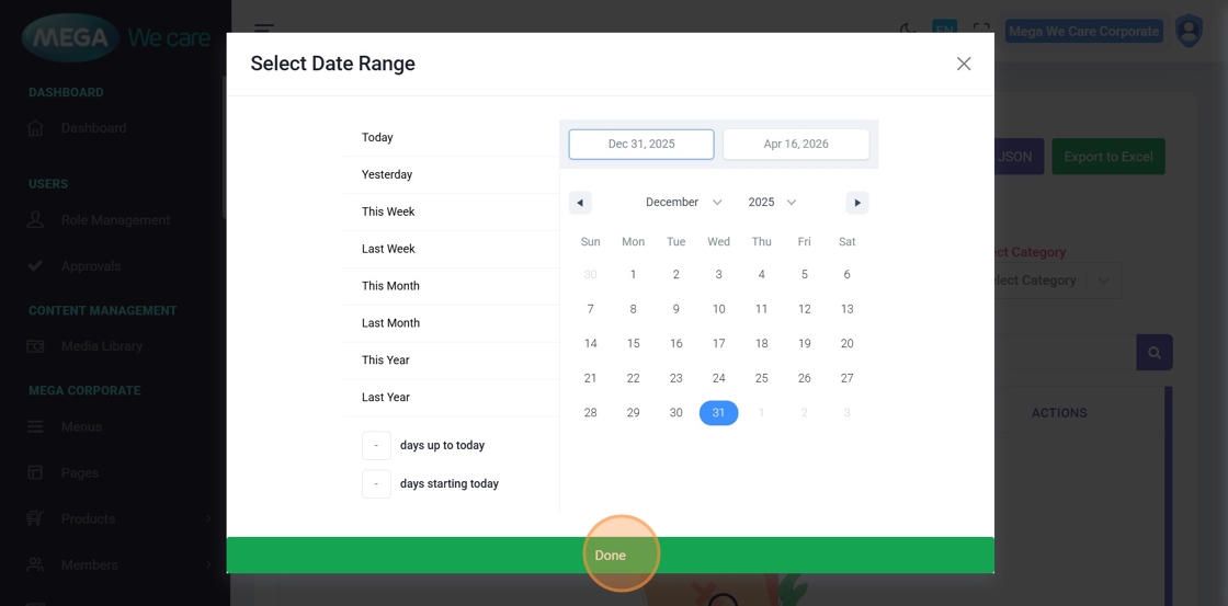 list updates based on the selected date range.
