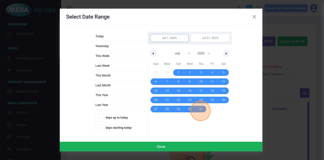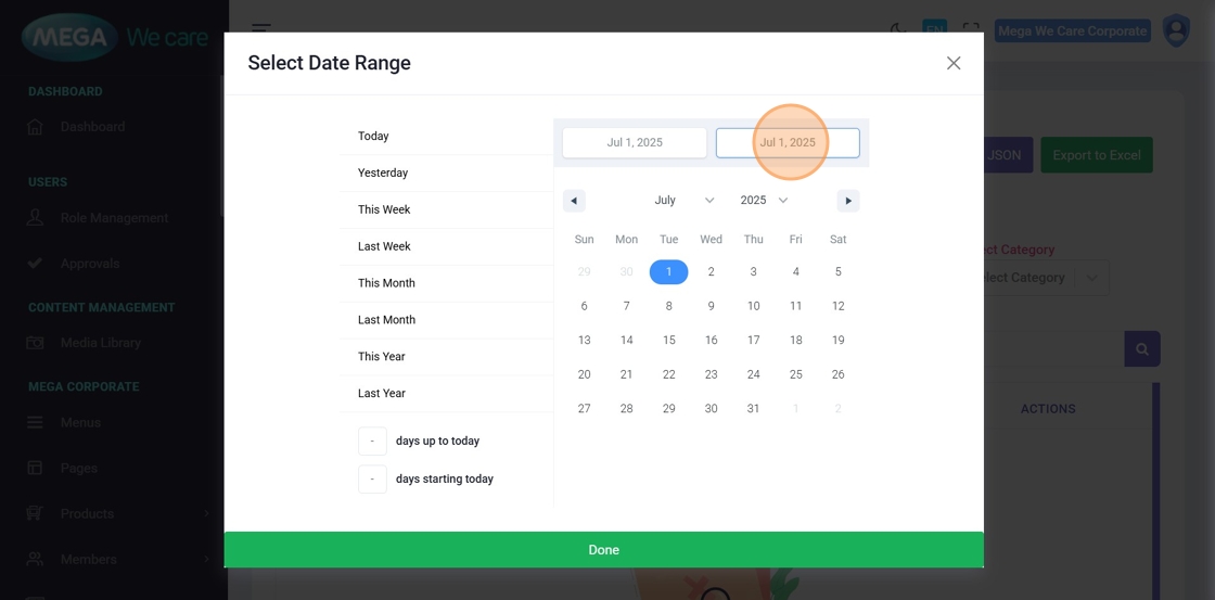 - Reopen the Date Range Selector